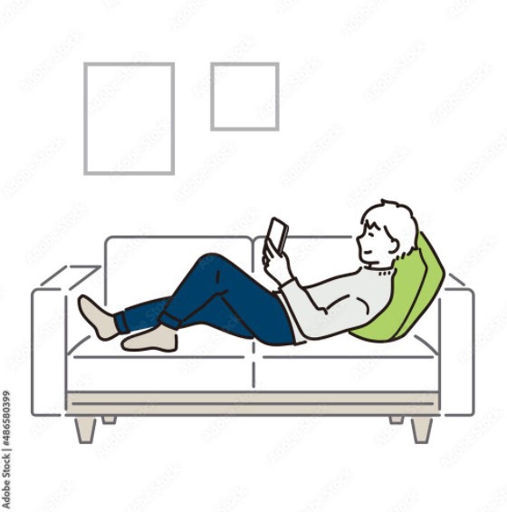 おうち時間を楽しむ様子だけでなく、ゴロゴロする、などといった少しネガティブなイメージや、ほったらかし投資などというテーマにもお使いいただけるのではないかと思います。