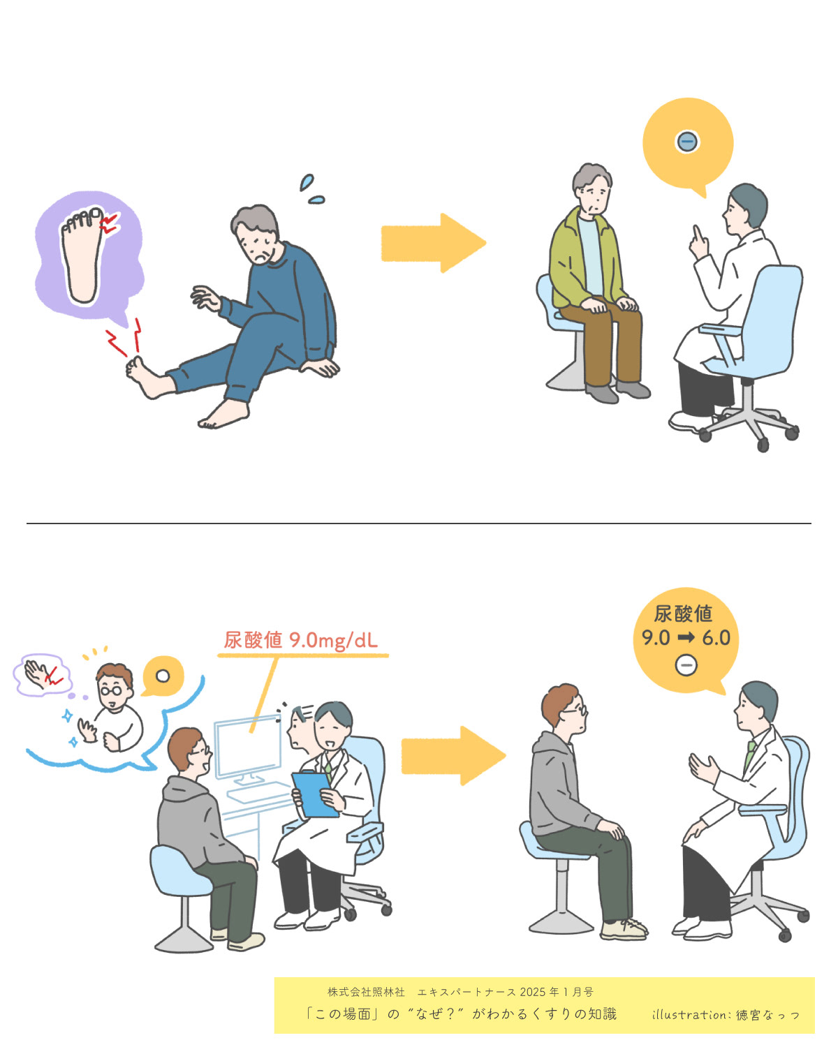 株式会社照林社様より、エキスパートナース1月号掲載の「この場面」の“なぜ?”がわかるくすりの知識 についてのイラスト制作のご依頼をいただきました。
